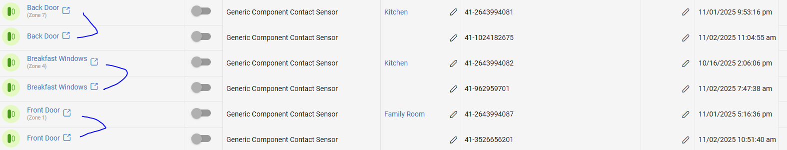 Or… go back to the app and rename them back to Zone 1, Zone 2, etc and update again, and the original child devices will reactivate and you can delete the newly created ones.