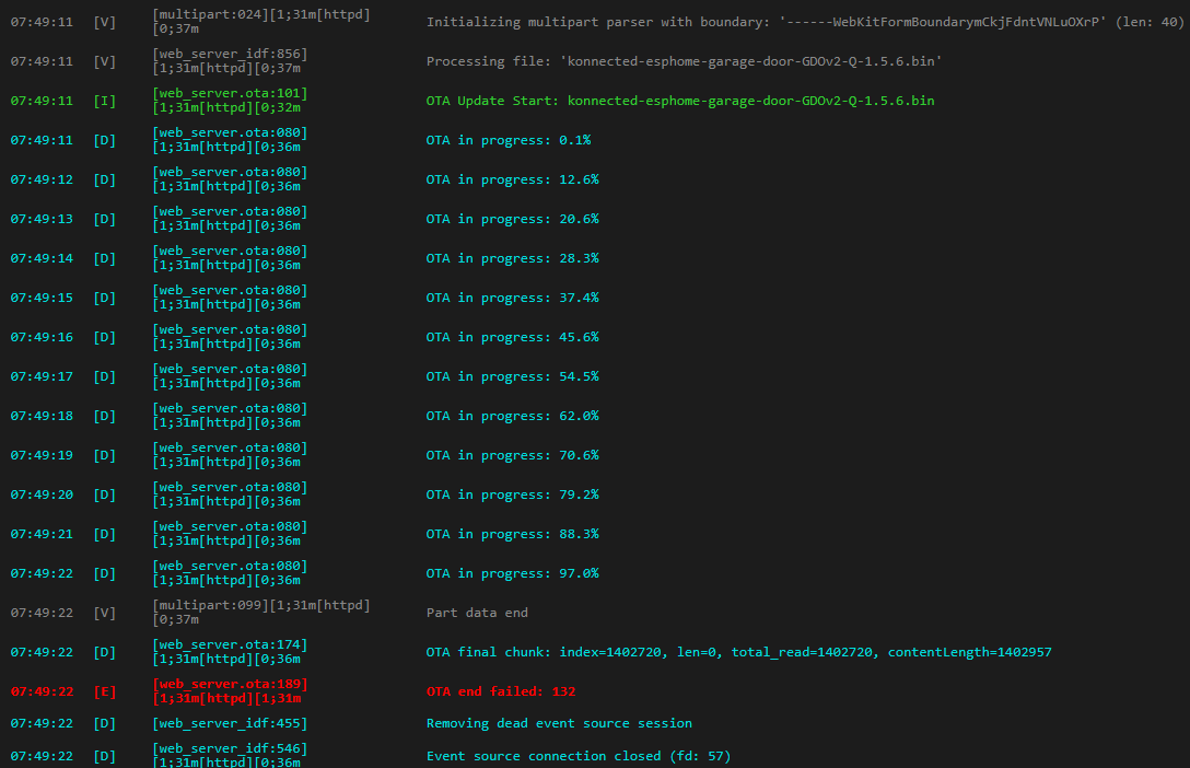 Is it possible to do an OTA update (rollback, in this case) on these using this? Release 2025.12.1 · konnected-io/konnected-esphome · GitHub When I attempt it from the web page of my wife’s garage door, the update fails. Definitely want to first try rolling back to a previous build, if possible.