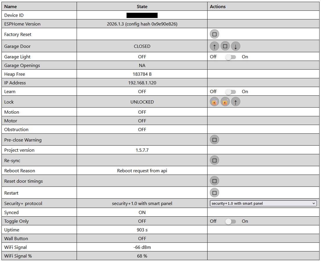 Fast forward to this morning and the 889LM for my garage door had the Learn button flashing with a beep every 60 seconds or so. I cycled the power, which resolved that issue, it seems. This was not happening last night or at 3:46am when I checked on the doors. I would have loved to grab Home Assistant logs, but my damn Pi was offline at the time, so I have no logs to share.