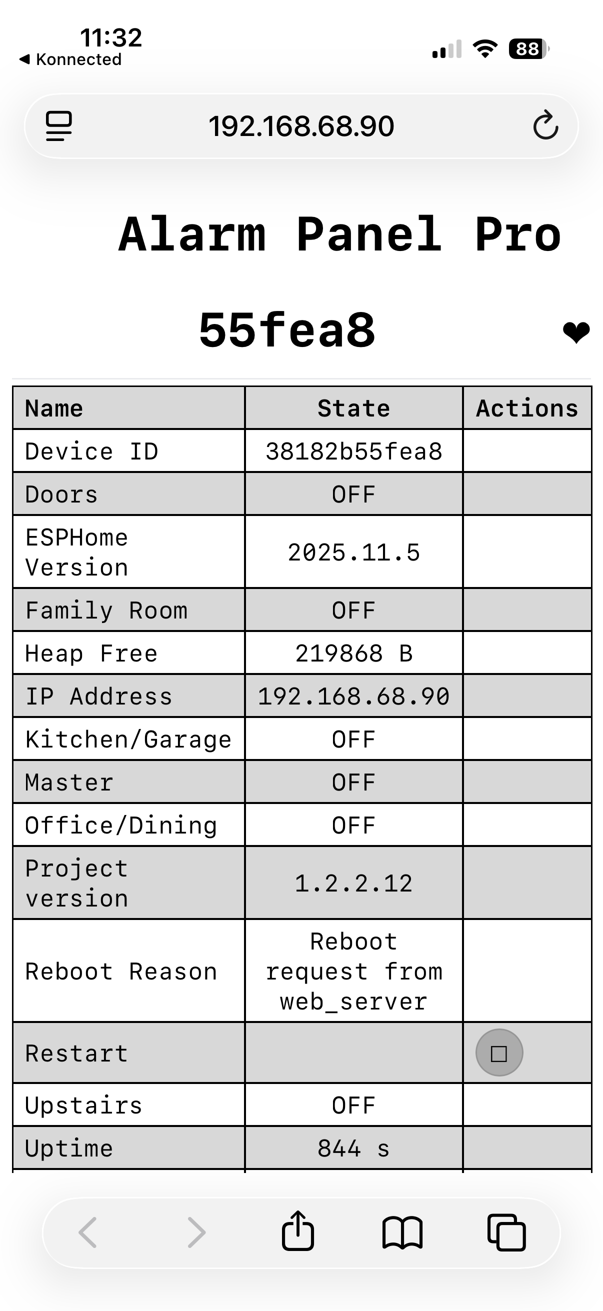 The reason that it appears to be “going offline” after you update the firmware from the Konnected app is for this very reason. Once our firmware customization service takes over the device config, it’s no longer discoverable to ESPHome Builder because you can’t have two systems managing the firmware config for a single device.