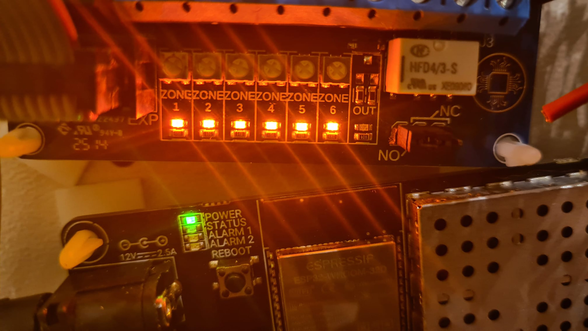 All my other inputs work fine, only this Zone 3 is stuck to ON, and to make sure it wa not a problem with the physical sensor, I swapped with the Sensor on Zone 4 that was working fine: Still the same Zone 3 is stuck. And actually by looking very carefully, it seems the orange LED on this faulty Zone 3 is shining less bright than all others: