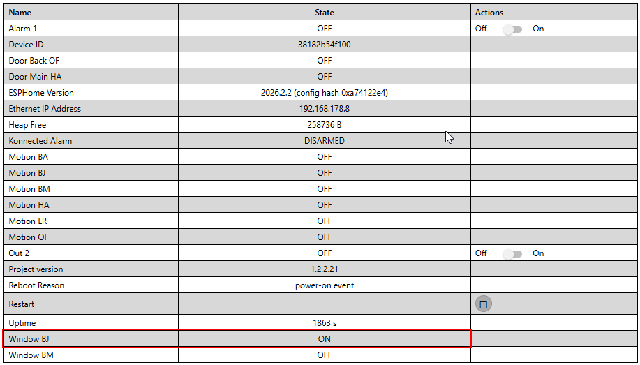 However it remains constantly ON in Konnected Web page: