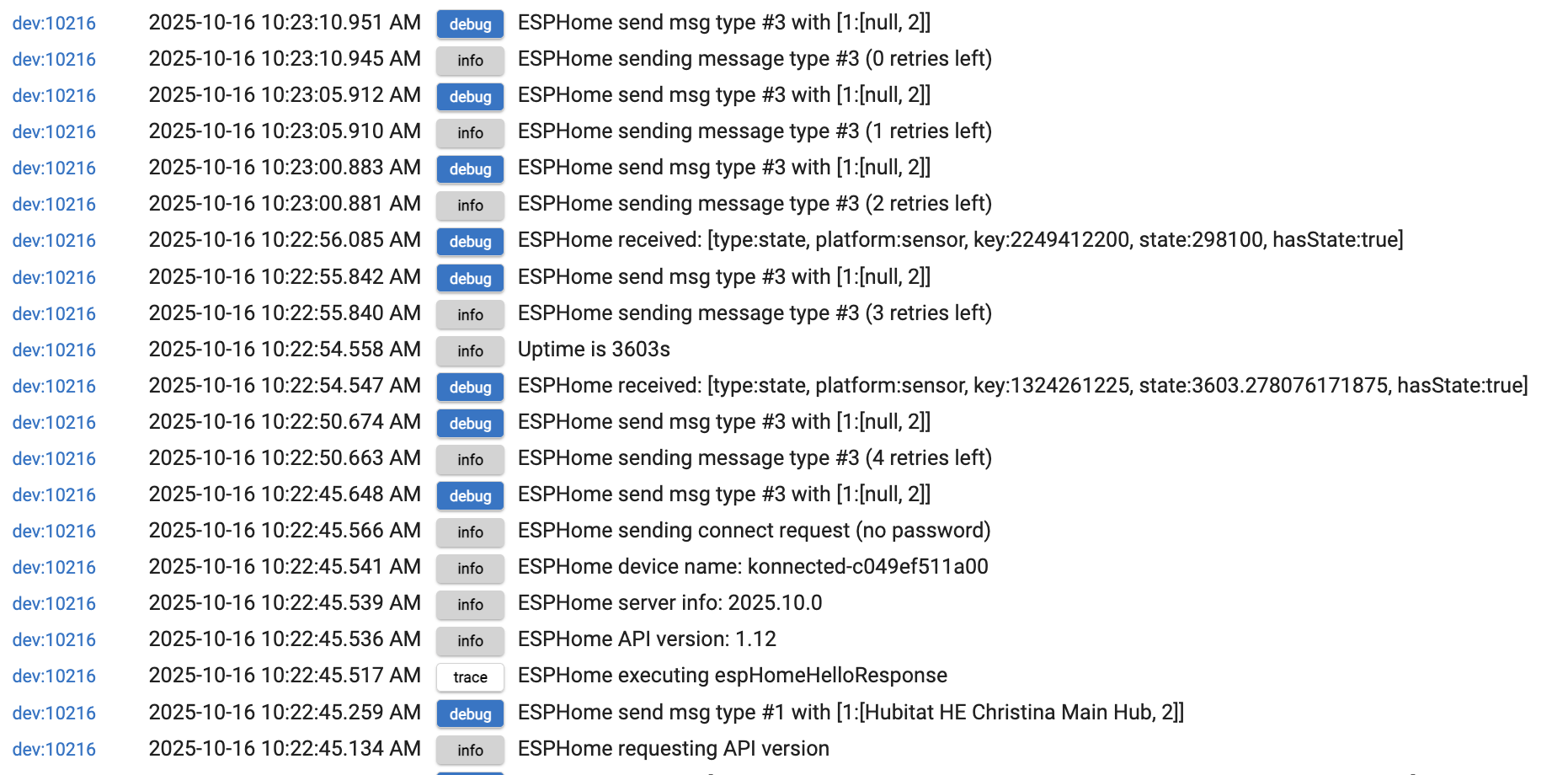 And here's the log from the Konnected Status Page when I produced a couple random events