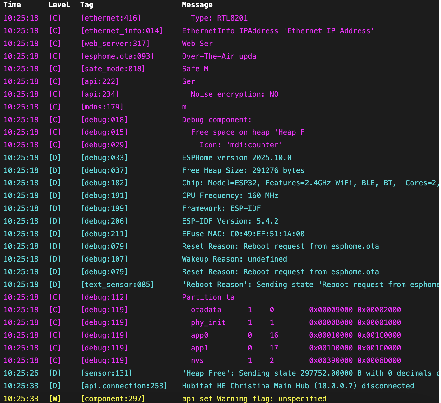 ‘Reboot Reason’: Sending state ‘Reboot request from esphome.ota’